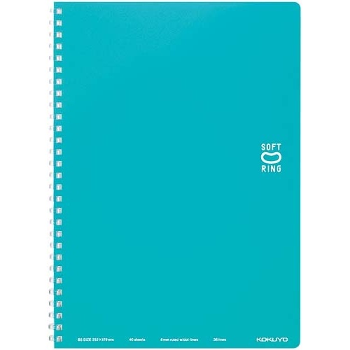 コクヨ独自開発の“新感覚やわらかリング”を採用したリングノートです。書くときリングに手が当たっても気にせず端まで美しく書ける。