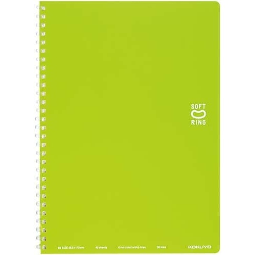 コクヨ独自開発の“新感覚やわらかリング”を採用したリングノートです。書くときリングに手が当たっても気にせず端まで美しく書ける。