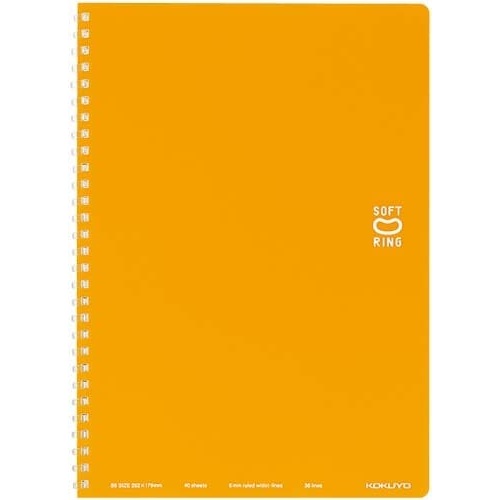 コクヨ独自開発の“新感覚やわらかリング”を採用したリングノートです。書くときリングに手が当たっても気にせず端まで美しく書ける。