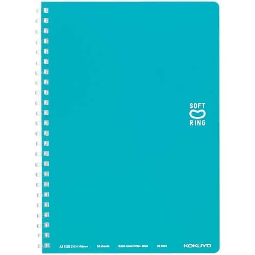 コクヨ独自開発の“新感覚やわらかリング”を採用したリングノートです。書くときリングに手が当たっても気にせず端まで美しく書ける。