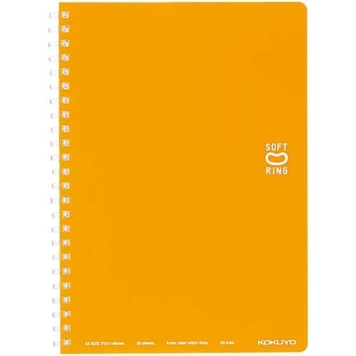 コクヨ独自開発の“新感覚やわらかリング”を採用したリングノートです。書くときリングに手が当たっても気にせず端まで美しく書ける。