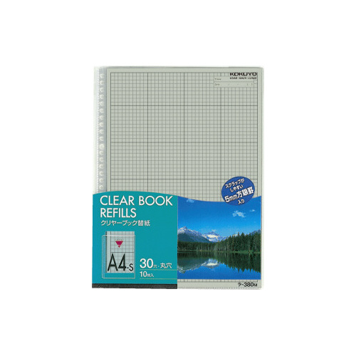クリヤーブック替紙 A4縦30穴 グレー 10枚