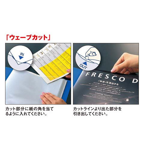 <クリヤブック替紙>ウェーブカットポケットなので、ラクに書類を出し入れできます。中紙があるタイプです。