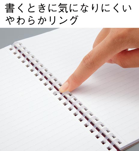 コクヨ独自開発の“新感覚やわらかリング”を採用したリングノートです。書くときリングに手が当たっても気にせず端まで美しく書ける、これからの新定番ノートです。