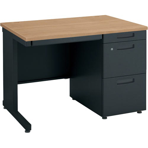 ●材質/天板:(表面)メラミン化粧板(芯材)スチール(エッジ)サイド・後ろ:ABS、脚:スチール(焼付塗装)、袖:(表面)スチール(焼付塗装)、鏡板:ABS、アジャスター:PA