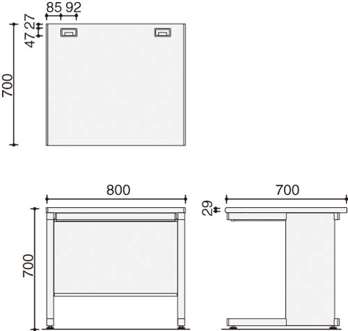 ●材質/天板:(表面)メラミン化粧板(芯材)スチール(エッジ)サイド:ABS・後ろ:PP、脚:スチール(焼付塗装)、アジャスター:PA