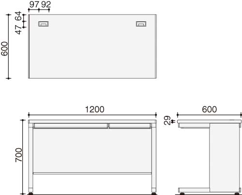 ●耐荷重/天板:約150kg、センター引出:約5kg