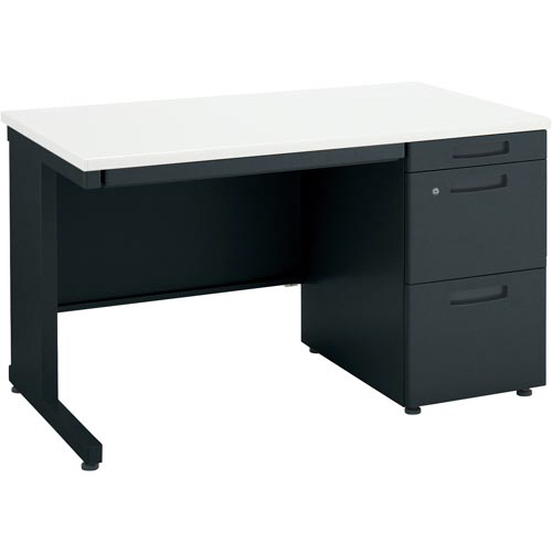 ●材質/天板:(表面)メラミン化粧板(芯材)スチール(エッジ)サイド・後ろ:ABS、脚:スチール(焼付塗装)、袖:(表面)スチール(焼付塗装)、鏡板:ABS、アジャスター:PA