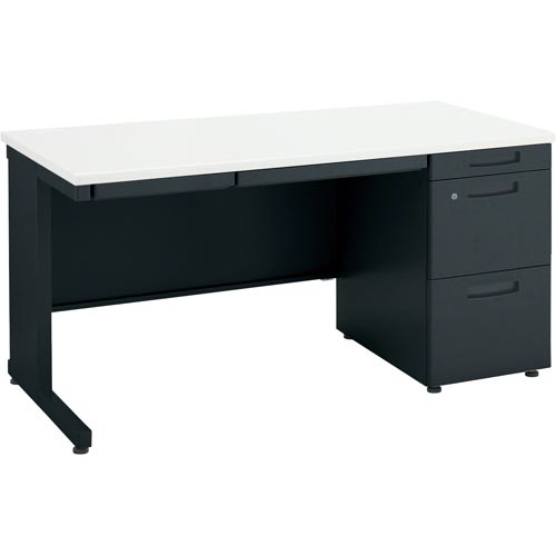 ●材質/天板:(表面)メラミン化粧板(芯材)スチール(エッジ)サイド・後ろ:ABS、脚:スチール(焼付塗装)、袖:(表面)スチール(焼付塗装)、鏡板:ABS、アジャスター:PA