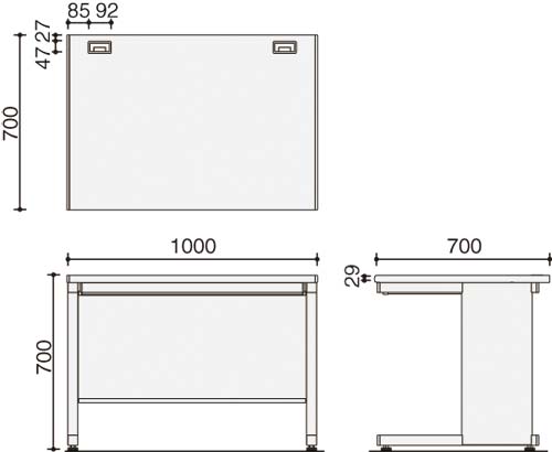 ●耐荷重/天板:約150kg、センター引出:約5kg