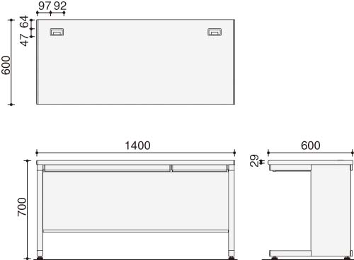 ●耐荷重/天板:約150kg、センター引出:約5kg