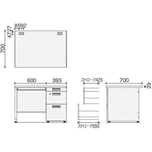 ●耐荷重/天板:約150kg、センター引出:約5kg、袖引出:(上段)約4kg(中段)約20kg(下段)約20kg
