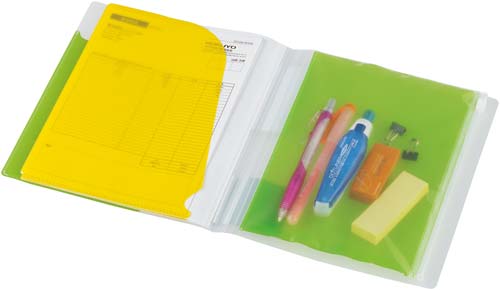 クリヤーホルダーとクリヤーブックの良い点を組み合わせたスッと入れサッと取り出せるポケットブック。書類の量に合わせて背幅が変わり、書類が少なくても多くてもコンパクト収容・保管。便利なチャックポケット付。