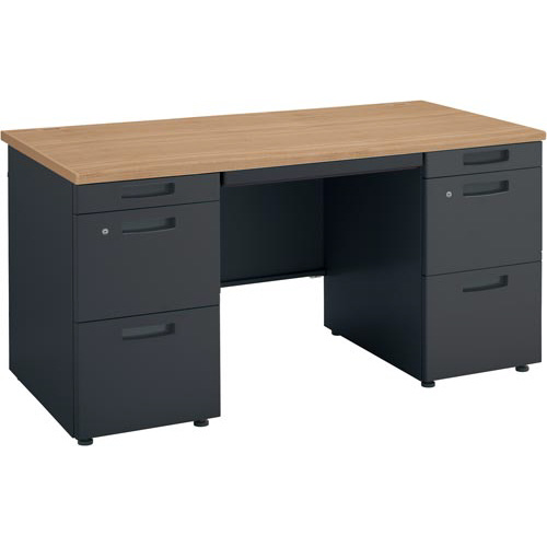ワンランク上のコクヨ製スチールデスクシリーズ!本体色ブラック+木目色。