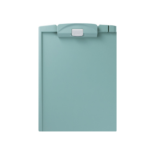 簡単レバー操作でクリップをラクラク開閉できます。樹脂タイプのクリップボード。ペンホルダー付き。