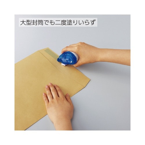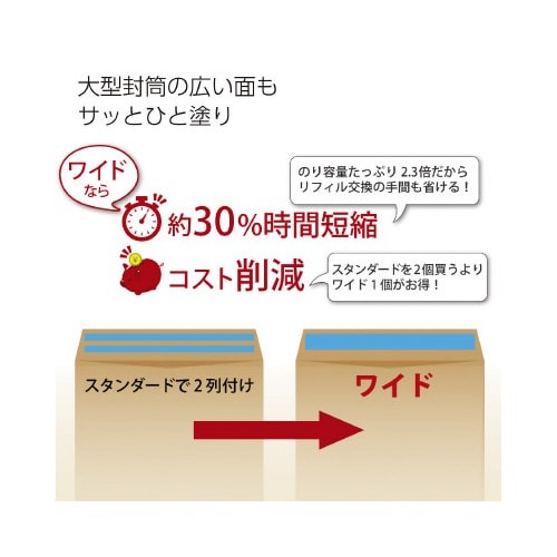 幅広タイプなので、大型封筒の封かんに最適。封が開かない様に2列塗りや3辺塗りをするのと比べて作業効率が上がります。