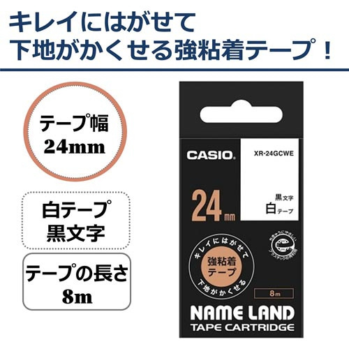 ネームランド はがせる強粘着テープ白24mm黒文字