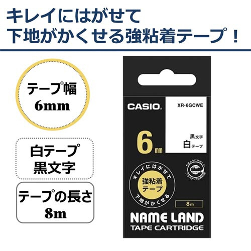 ネームランド はがせる強粘着テープ白 6mm黒文字