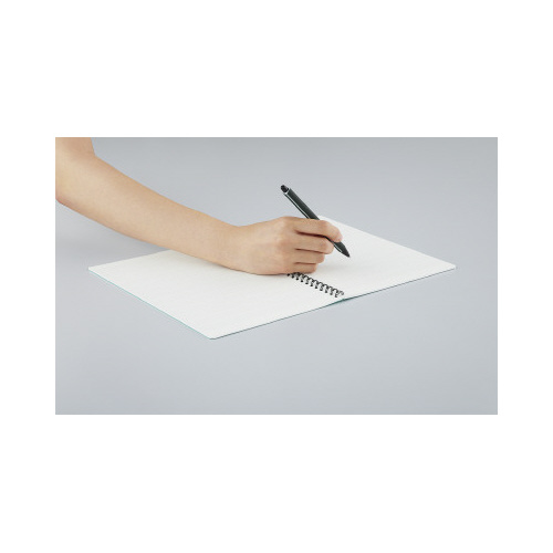 人気のドット入り罫線ノート。表紙はビジネスシーンになじむ紺色で、薄い地模様(ハニカム柄)とマットな表面加工の落ち着いた雰囲気です。切り離してスキャンしやすいマイクロミシン目入りです。