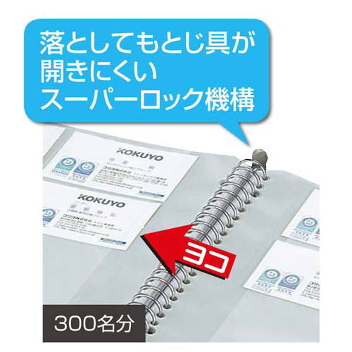 ホルダータイプ(差し替え式)の名刺ホルダー。ヨコ入れも可能「!落としてもとじ具が開きにくいスーパーロック機構です。