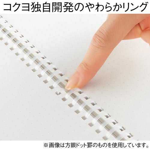 コクヨ独自開発の“新感覚やわらかリング”を採用したリングノートです。書くときリングに手が当たっても気にせず端まで美しく書ける、これからの新定番ノートです。
