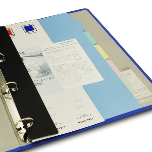 書類を保護するためのプロテクター付き。閲覧に適したリング式とじ具で書類の中途抜差しも簡単。