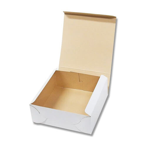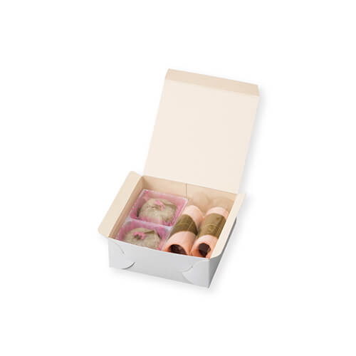 和菓子などにもおすすめの白無地ケース。サイズは120×122×45mmです。