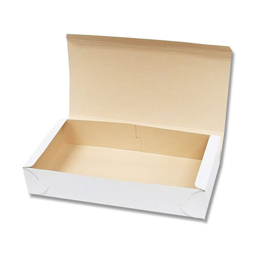 和菓子などにもおすすめの白無地ケース。サイズは120×244×45mmです。
