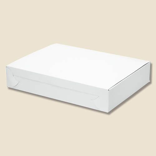 和菓子などにもおすすめの白無地ケース。サイズは180×242×45mmです。
