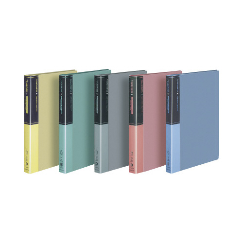 書類の出し入れがしやすいウェーブカットポケットのクリヤーブック固定式。表紙は発泡PP製で丈夫な仕上がりになっています。