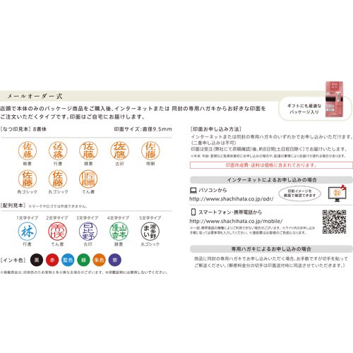 ●メールオーダー内容/印面は8書体、6色より選択可能