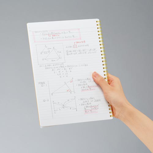 コクヨ独自開発の“新感覚やわらかリング”を採用したリングノート。きれいに切り離せる、マイクロミシン目入りのカットオフタイプ。「美しく書く」をサポートするドット入り罫線を採用しました。