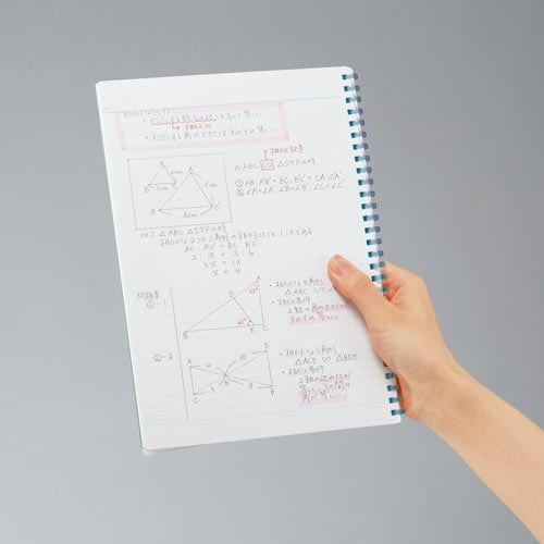 コクヨ独自開発の“新感覚やわらかリング”を採用したリングノート。きれいに切り離せる、マイクロミシン目入りのカットオフタイプ。「美しく書く」をサポートするドット入り罫線を採用しました。