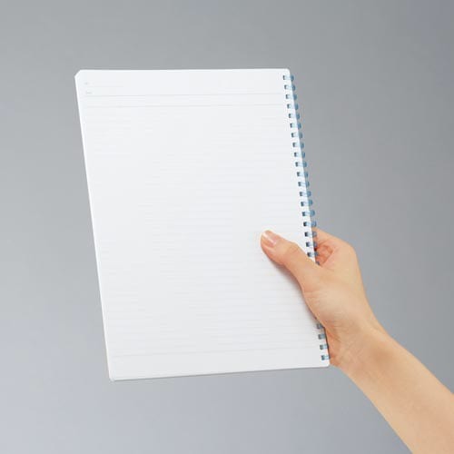 コクヨ独自開発の“新感覚やわらかリング”を採用したリングノート。きれいに切り離せる、マイクロミシン目入りのカットオフタイプ。「美しく書く」をサポートするドット入り罫線を採用しました。