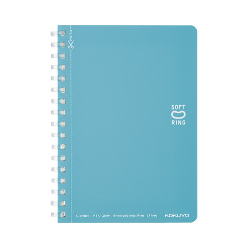 コクヨ独自開発の“新感覚やわらかリング”を採用したリングノート。必要なページだけをきれいに切り離せる、マイクロミシン目入りのカットオフタイプ。ドット入り罫線を採用。