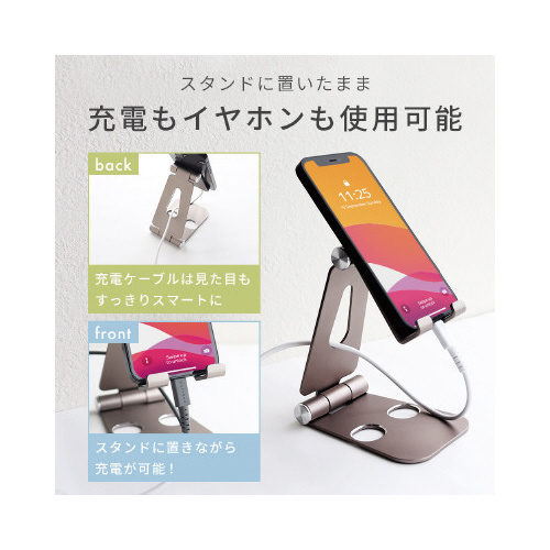 スタンドに乗せたまま充電 角度調整可スタンド BK