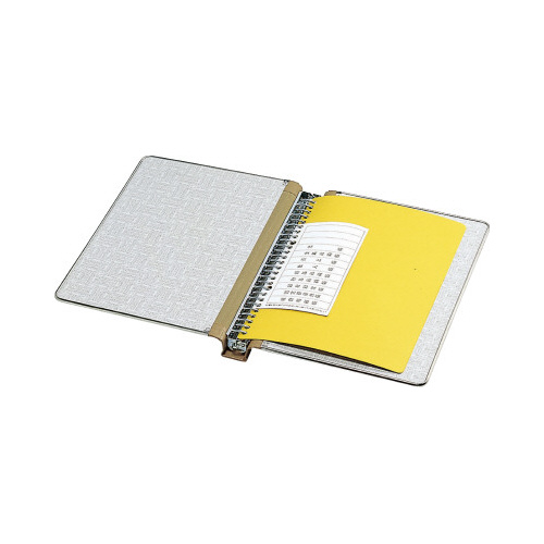 ビニール貼りで落ち着いた色合いのバインダー。表紙保護のためのステンレス製ふち金を付けています。