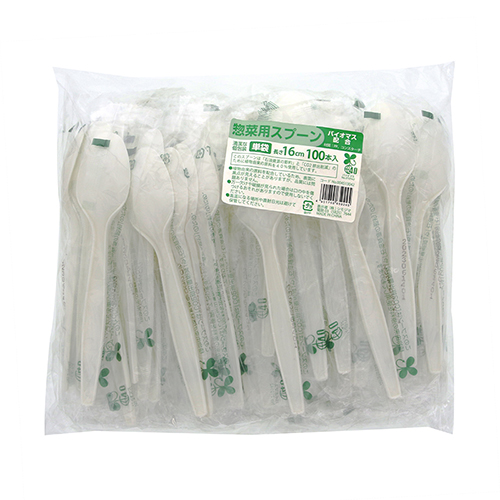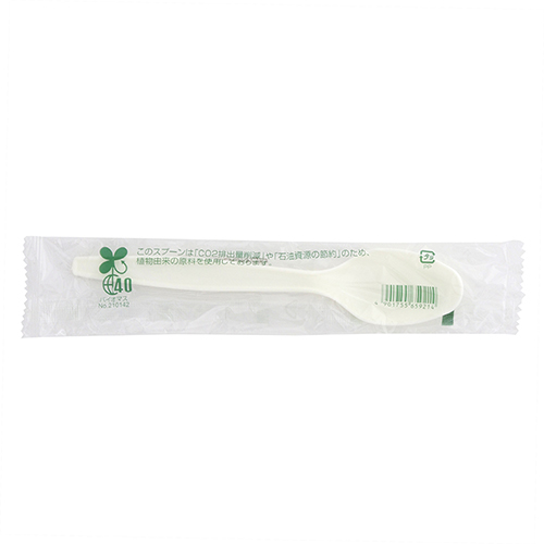 コーンスターチ40%をプラスチック材に配合した、環境にやさしいエコなカトラリーです。スプーンタイプ。入数:100本。