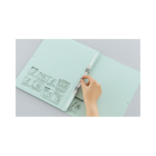 収納量に応じて背幅を変えられるコクヨの「ガバットファイル」。フラットとじ具が2つついた両開きタイプです。とじ具のワンタッチ開閉が可能!