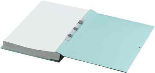ワンタッチでとじ具が開閉。つづりひも(別売)を使うと表紙が開かないよう固定出来ます。背幅は10cmまで伸び、書類の量に合わせて調節可能。とじ具が2つ付いているので、裏側からも書類の抜き差しができます。