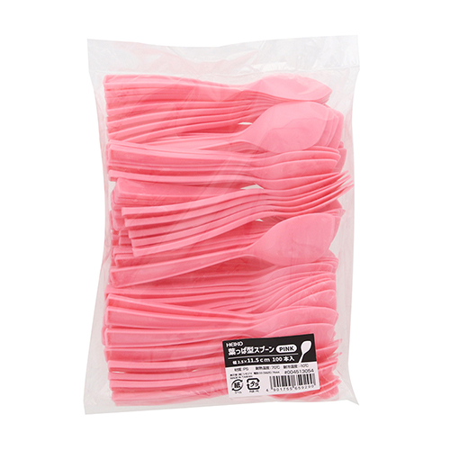 アイスやデザートにぴったりなミニスプーンです。ピンク色の葉っぱ型がかわいい。耐熱温度:-10〜70℃。入数:100本入。