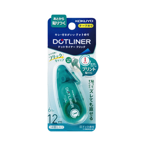 業界最小クラスのサイズで大容量12m巻のつめ替え式テープのり。塗って1分以内は、位置がズレてもサラッときれいにはがせるので安心です。貼って6時間後には、のりが定着するのではがれません。