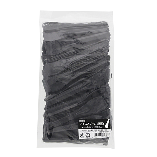 アイスやデザートにぴったりなミニスプーンです。スタイリッシュな黒色で、容器の端まですくいやすい角丸型。耐熱温度:-10〜70℃。入数:200本。