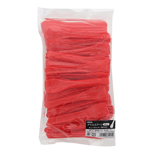 アイスやデザートにぴったりなミニスプーンです。おしゃれな赤色で、容器の端まですくいやすい角丸型。耐熱温度:-10〜70℃。入数:200本。