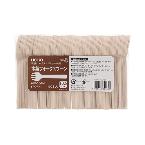 天然の木材を使用し燃えるゴミとして廃棄できる、環境に配慮したフォークスプーンです。アイスやデザート、スナックフードににおすすめの小さめサイズです。入数:100本。