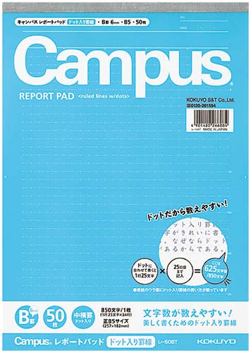 ドットが目印になって、文字数が数えやすく、美しく書ける!ドット入り罫線レポート用紙。