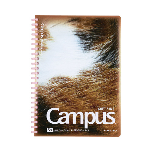 コクヨ独自開発の肉球のようにやわらかいソフトリングを採用したリングノートです。犬猫の毛並みをデザインした限定柄ノートです。ソフトリングのため、触ると肉球のようなやわらかい触感を味わうことができます。