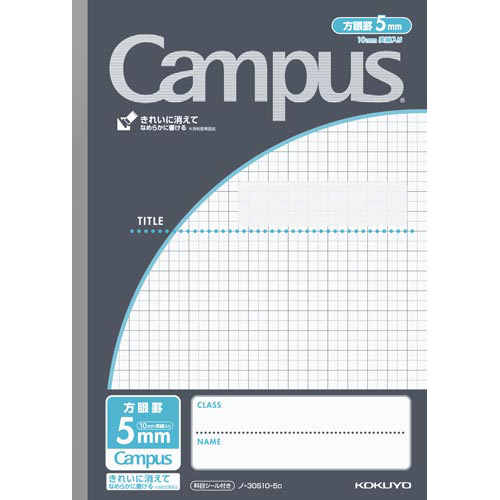 定番の5mm方眼罫(10mm実線入り)の、男の子向けのカラーブラック。きれいに消えてなめらかに書ける中紙を採用。