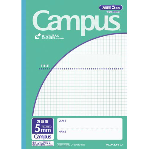 定番の5mm方眼罫(10mm実線入り)の、男の子向けのカラーエメラルドグリーン。きれいに消えてなめらかに書ける中紙を採用。