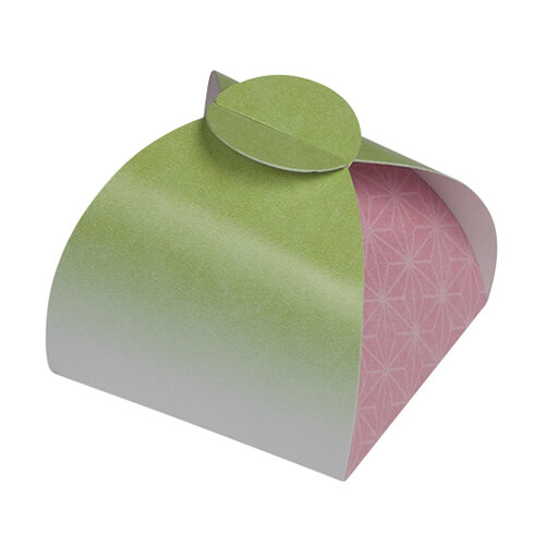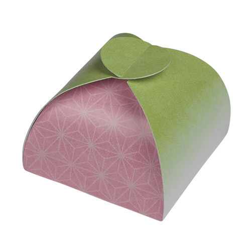 サイズが77×77×77mmのお菓子向けギフトパッケージ。和菓子の包装にちょうど良い大きさとなっています。和菓子類のパッケージ、ギフト包装にいかがでしょうか。